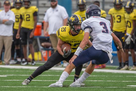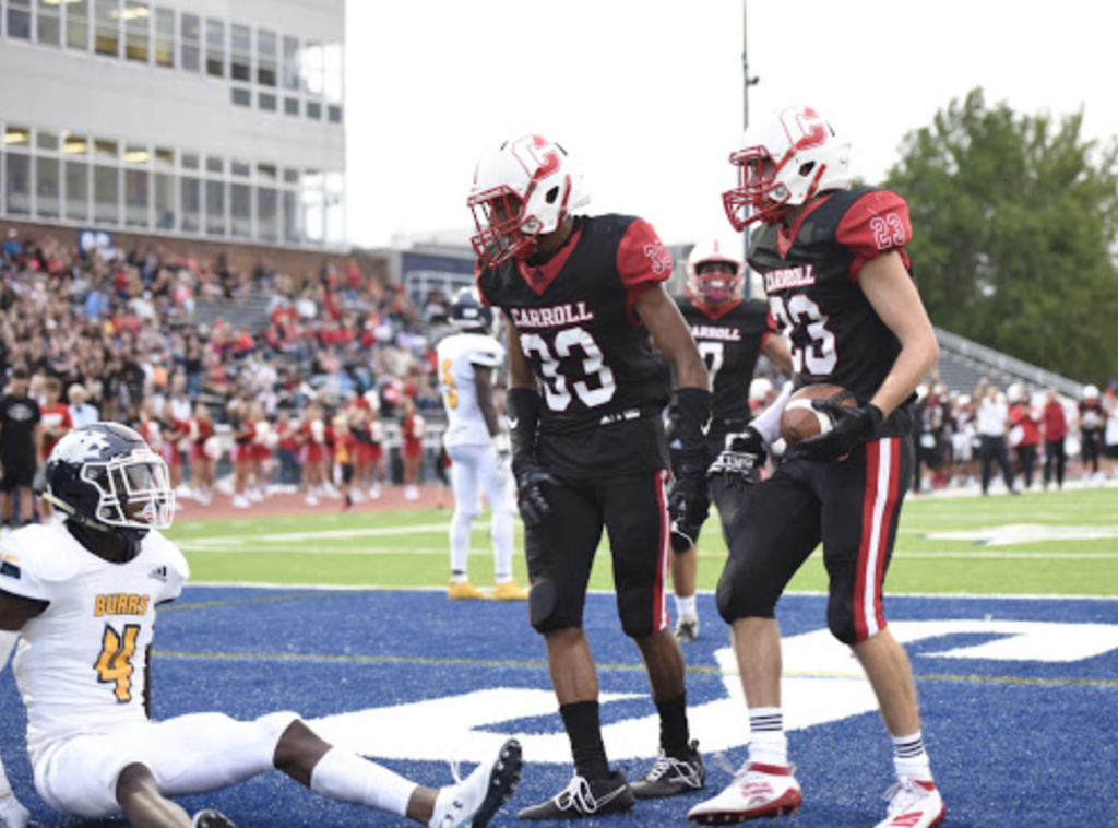 Sam Brown is off to a fantastic start. Against the Fords, the sophomore tailback scored four touchdowns, rushed for 182 yards on only 11 carries, and caught six passes for 105 yards. For the season, he has found the end zone 12 times – seven via rush and five off passes from senior quarterback Jack Machita.