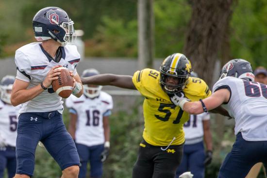 On Carroll’s first drive, Lamey perfectly executed a fake punt to garner a key first down for the Patriots. In the second quarter while playing cornerback, Lamey intercepted a pass to help the defense further frustrate the Burrs.
