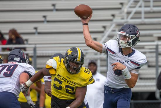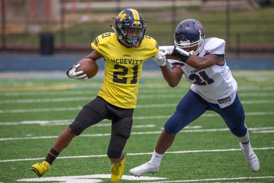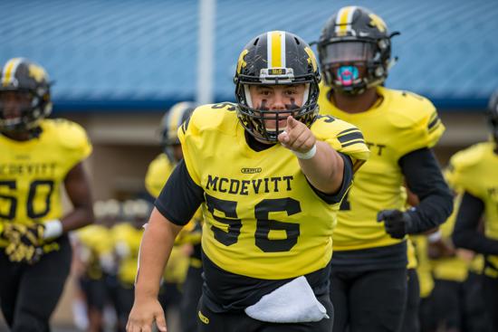 McDevitt senior quarterback Lonnie Rice once again strapped the Lancers on his broad shoulders, finishing with 94 yards and two touchdowns on the ground and 6 of 11 passing for 113 yards and a touchdown through the air.
