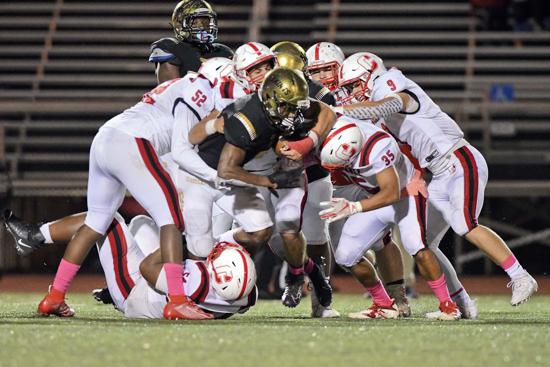 Five players – senior Charles Ingram, sophomore Mason Peterson, junior Derrick Jackson, senior Oscar Oduma, and sophomore Armon Mapp – combined for a sizzling 314 rushing yards (of the team’s 353) and five touchdowns on only 19 attempts.