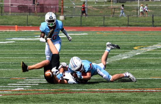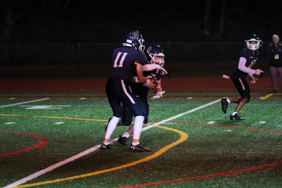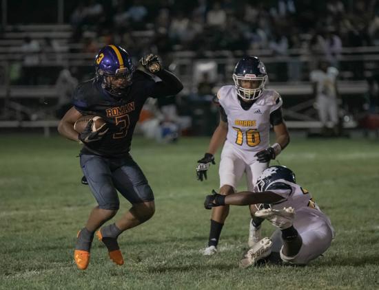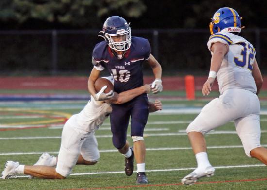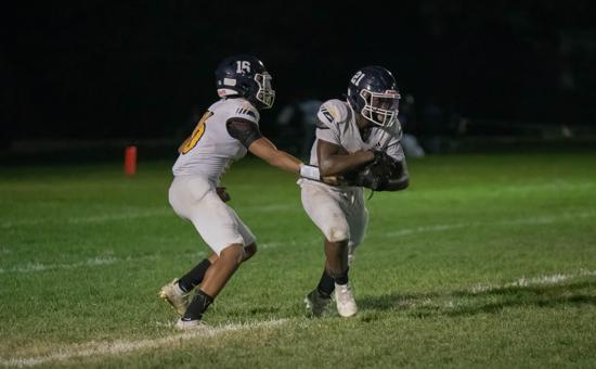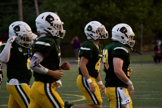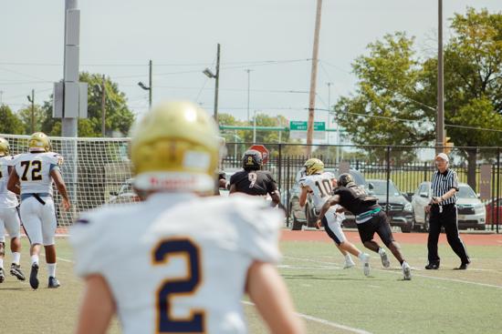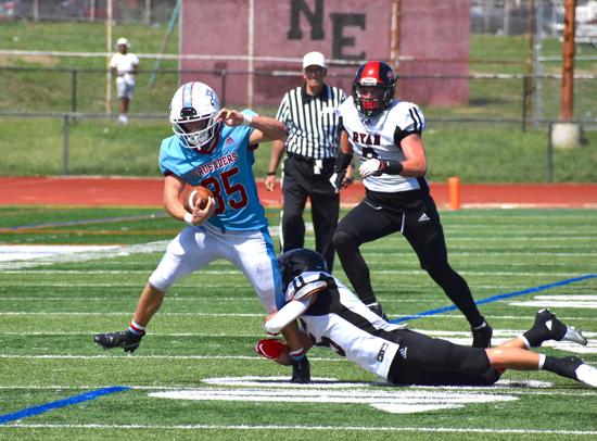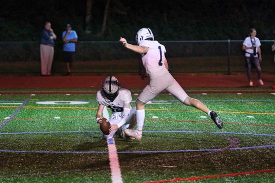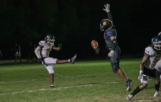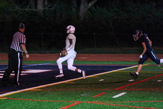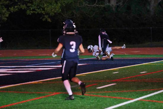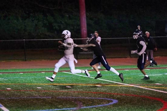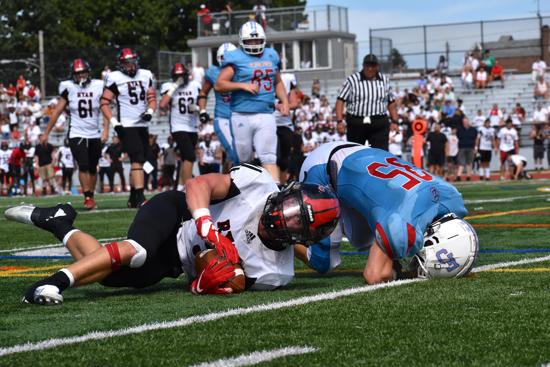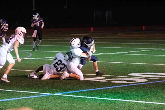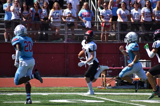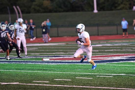 Against Frankford, junior end Nick Rogers was a force with three solo tackles, one assist, one sack, a fumble recovery, and a blocked punt returned for a touchdown as the Raiders held Frankford to only 97 yards in overall defense.