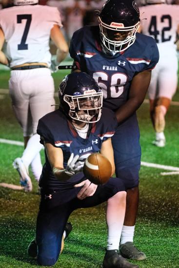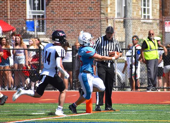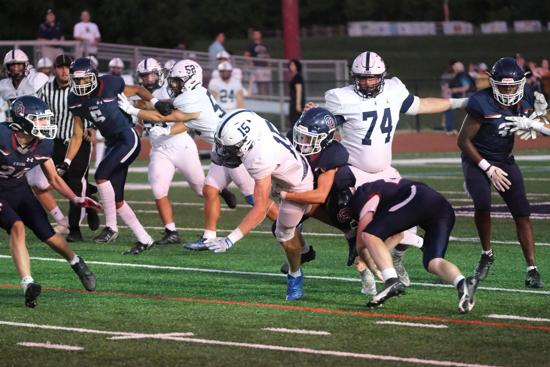Among particular Patriots to watch, senior offensive tackle and co-captain AJ Dilks was a first-team All-Catholic selection last year and is off to another string start as colleges continue to express interest. Senior defensive end Jack Fry (nine total tackles; three sacks), also a co-captain, has “been on fire to start the year as well,” said Detweiler. Fry visited West Chester University this past weekend.