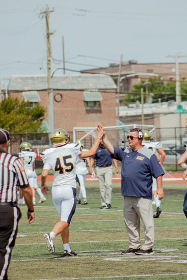 Detweiler also mentioned senior newcomer and wide receiver Chase Gallagher, as well as senior linebacker, fullback, and co-captain Anthony Spurio, a second-team All-Catholic who has received an offer from Seton Hill University and so far has 12 combined tackles, one sack, and a touchdown rush.
