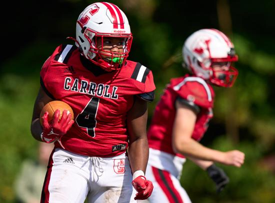 In the win over O’Hara, one of junior Sam Cooper’s two touchdowns included a 71-yard reception from Tryon. Senior Colin Majors tallied a season-high 166 yards on 23 carries. Thenor (9 carries, 71 yards) and sophomore Sincere Fairey (4-60) also ran wild.