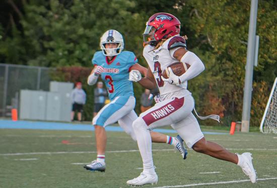 In St. Joseph’s Prep’s 48-14 win at Father Judge, junior quarterback Samaj Jones fired four touchdown passes and finished the first half with 318 yards on 13 completions. He also added a pair of touchdown runs. Sophomore teammate Alijah Turner caught four passes for 116 yards and a touchdown.