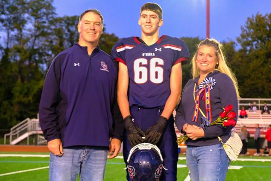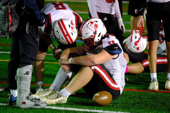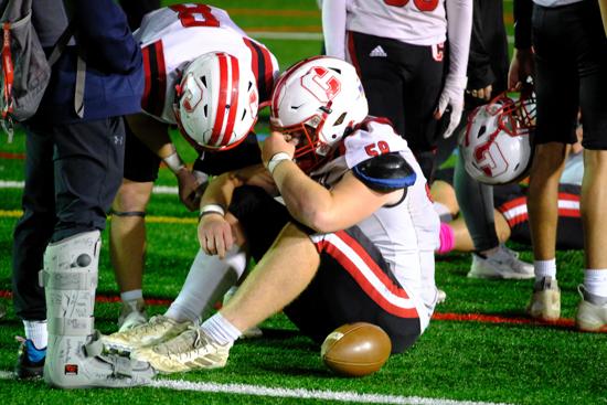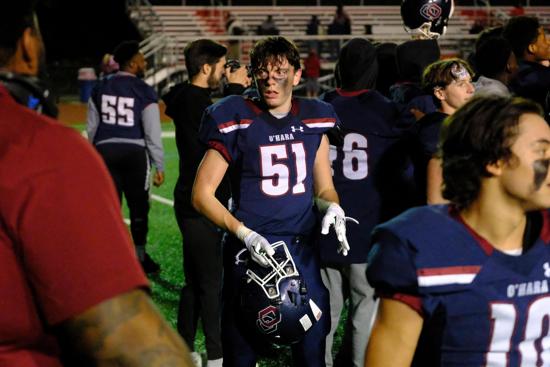 Intangibly, however, a photo taken by Philadelphia Sports Digest’s Lennie Malmgren immediately after the game displayed the epitome of sportsmanship when O’Hara senior linebacker/running back John Shelton was captured standing over a spent, prostrate Archbishop Carroll player near the 30-yard line and offering a few words of consolation.