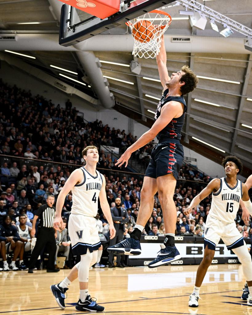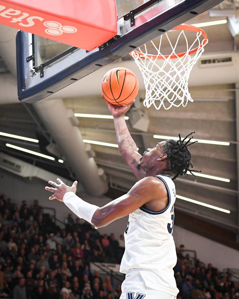 VILLANOVA, PA - Cam Whitmore drove into the lane and drew two defenders. He attempted to change his shot in midair to convert but the ball hit right off the front of the rim. Instead of retreating to the other end, he immediately went right back up, corralled it out of the air with one hand and slammed it through with force.