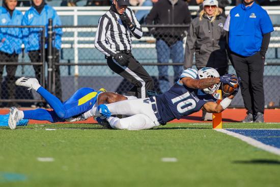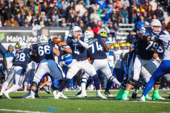 It was clear both teams were going to battle this win out to the last second of the game, each program had success moving down the field and they were both able to capitalize on many big plays leaving the fans on the edge of their seats all game long. Blue Hen quarterback Nolan Henderson was making major plays throughout the game, he threw for 347 yards and three touchdowns compared to the Wildcat quarterback Connor Watkins who only threw for 122 yards and no touchdowns.