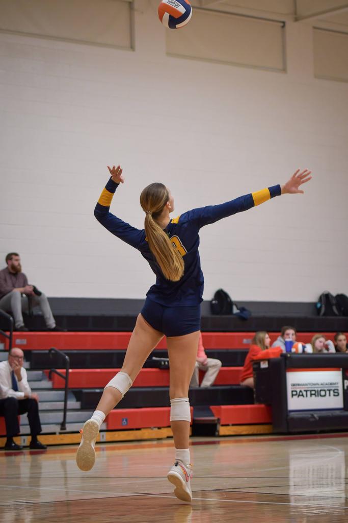 FORT WASHTINGTON, PA--It was quite a contest as the Germantown Academy Patriots hosted the Academy of Notre Dame Fighting Irish in Inter-Ac League volleyball action on Tuesday, October 17. A team effort helped Germantown Academy sweep Notre Dame in a 3-0 shutout.