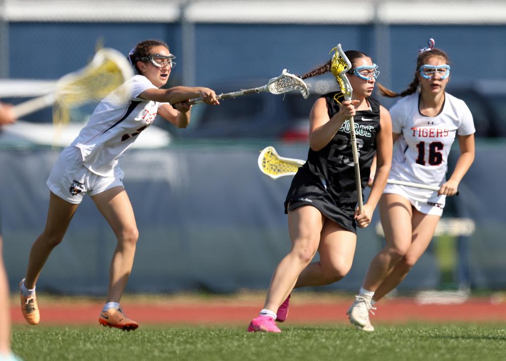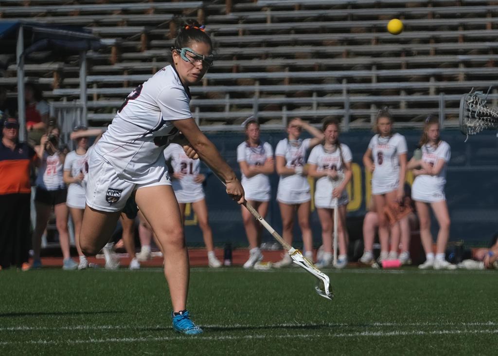 PHILA.- The Germantown Friends School Tigers lacrosse team completed its undefeated regular season in the Friends League, defeating the George School Cougars 18-7 on Tuesday, April 30. The Tigers fed off of a strong second quarter, which proved to be the difference as they outscored the Cougars 6-0. Emmie Day and Claire Rigdon helped lead the Tigers, combining for half of GFS’ goals.