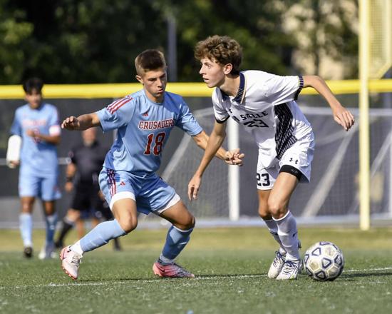 Junior Shane Lachawiec netted a hat trick in Roman Catholic’s 8-0 victory over Archbishop Carroll, which offset two cliffhangers at Father Judge High School. In the marquee event – a rematch of last fall’s PCL final – the host Crusaders dropped a 3-2, double-overtime decision to defending champion La Salle. Another close encounter saw Archbishop Ryan edge St. Joseph’s Prep, 1-0.