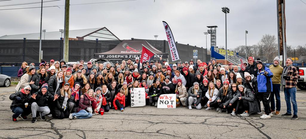 SJU Field Hockey Mantra "Why Not Us" as fans, alumni and past players cheered the team on to the Championship final. (Photo/ Mike Nance for PSD)