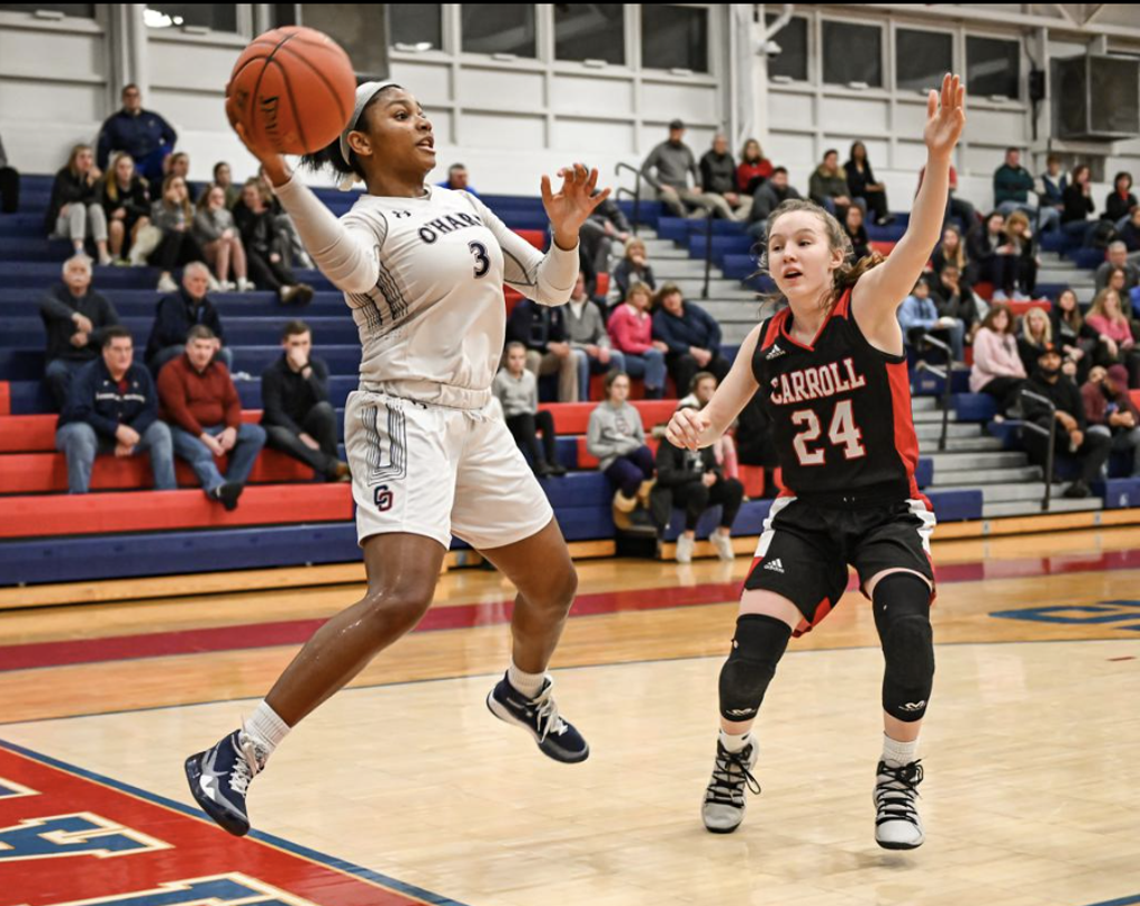 Amaris Baker (Cardinal O'Hara) playing against current Drexel teammate Grace O’Neil (Archbishop Carroll) during the 2020 PCL quarterfinals - PSD Photo by Mike Nance
