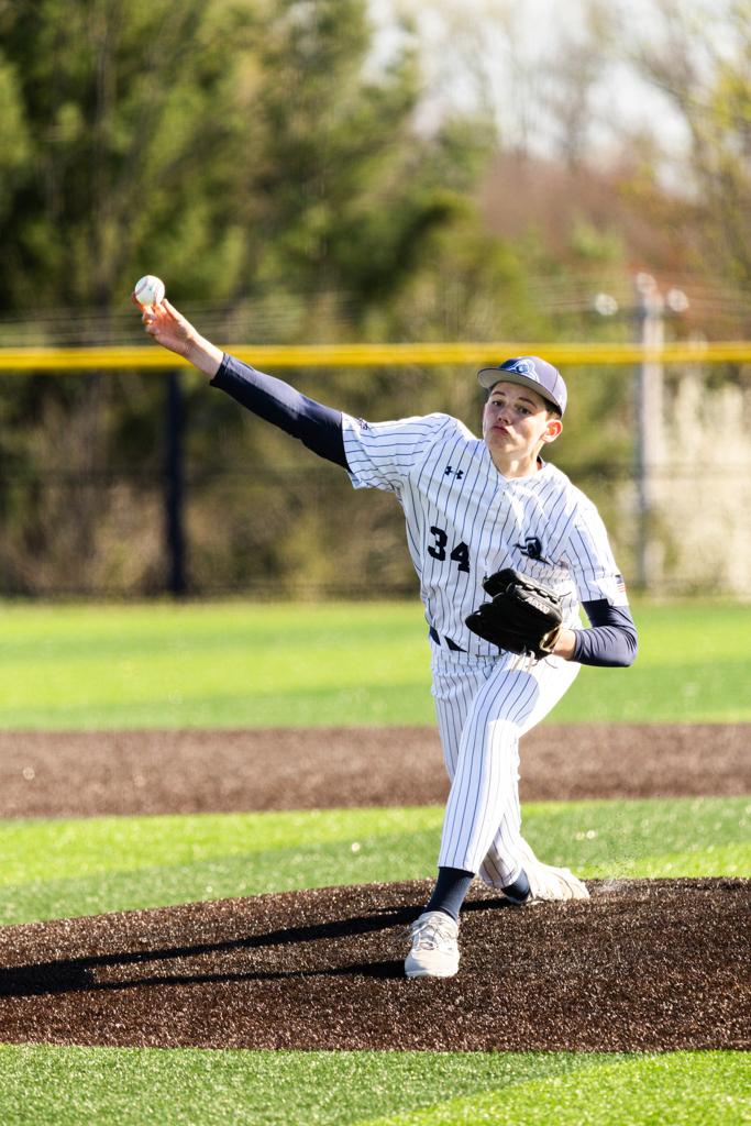Malvern Prep sophomore Collin Romanczuk pitched a complete game shutout vs. Haverford School - PSD Photo by Allie Riches