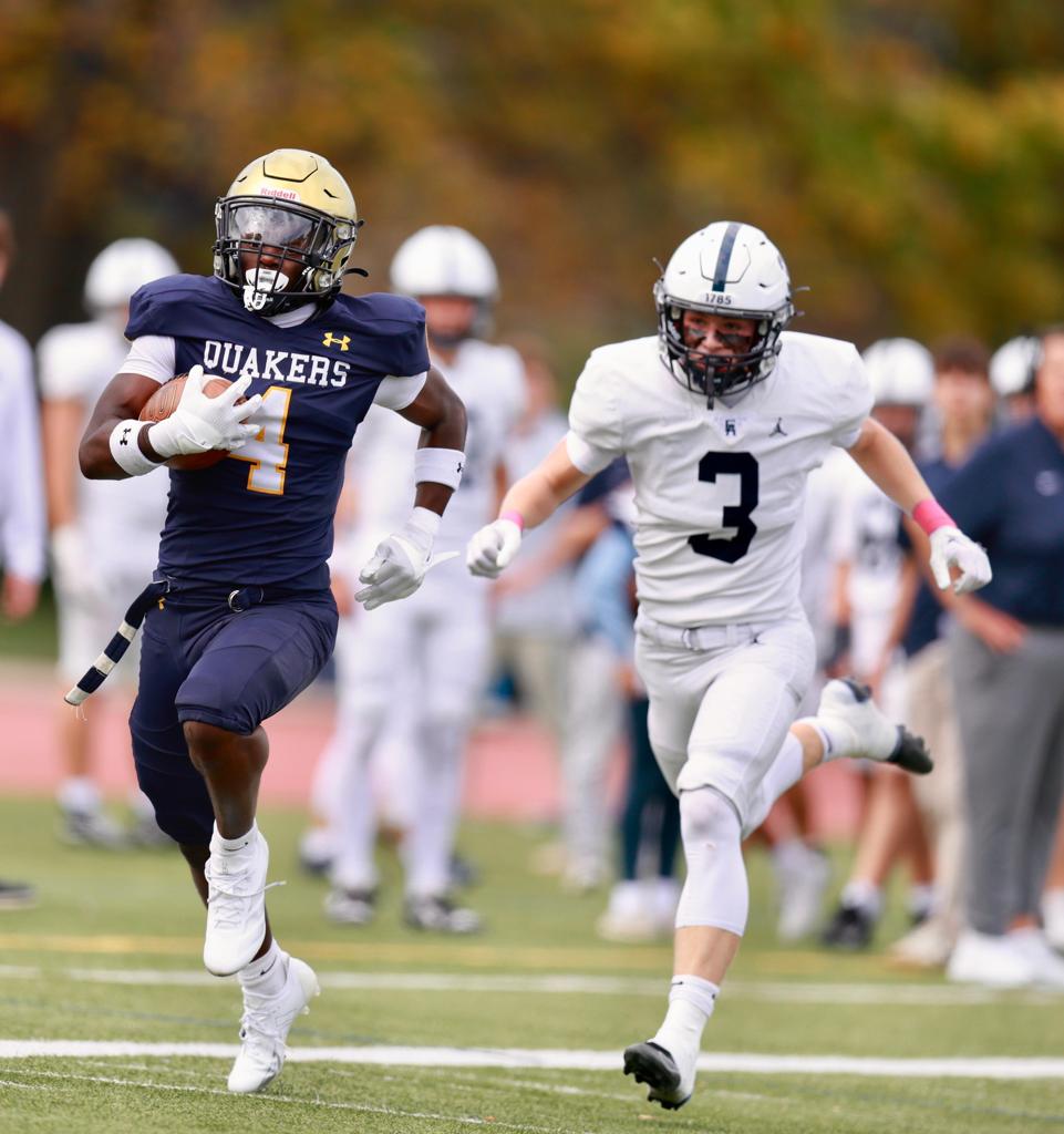 Penn Charter played one of the Inter-Ac’s top teams, Episcopal Academy on even terms for most of the game. It took a late touchdown by Episcopal Academy to defeat the Quakers, 31-24 at Penn Charter.