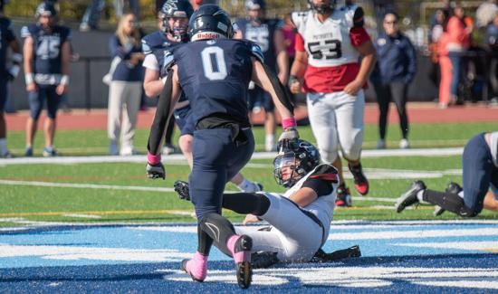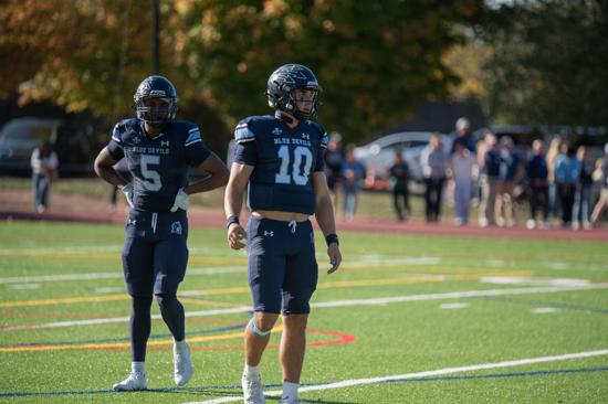 Downs rushed for 93 yards and a TD on nine carries. McGlinchey gained 37 yards and a TD on nine carries. Hartman completed 7 of 13 for 101 yards and a TD, while McGlinchey completed 9 of 17 for 140 yards. Furda caught three passes for 58 yards and a score.