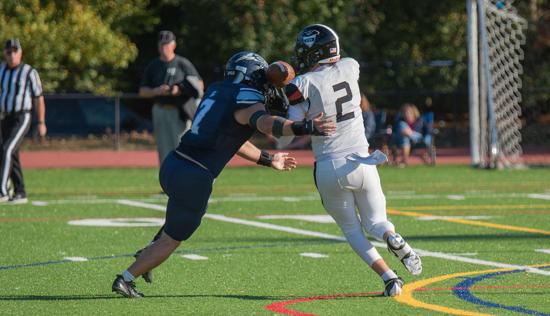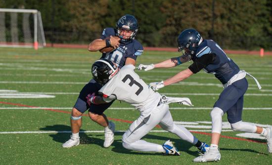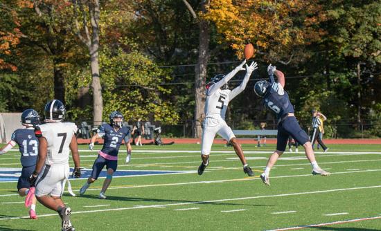 GA senior quarterback Xavier Stearn stood tall while facing a ferocious pass rush all game. The Patriots kept fighting and ended the scoring on a 13-yard TD strike from Stearn to Mick McKee with 9:36 left in the fourth quarter.