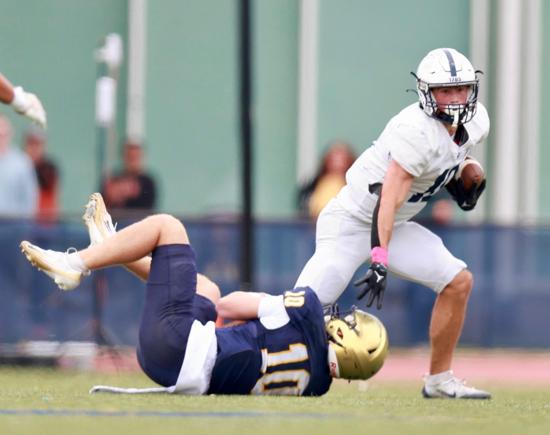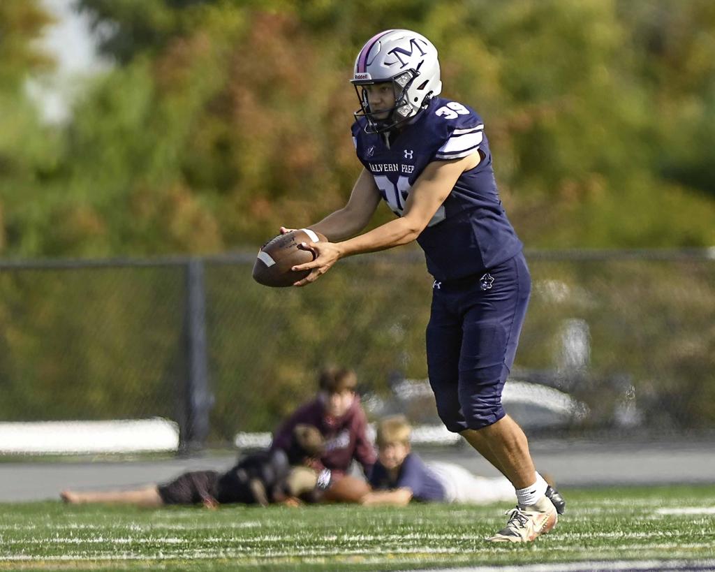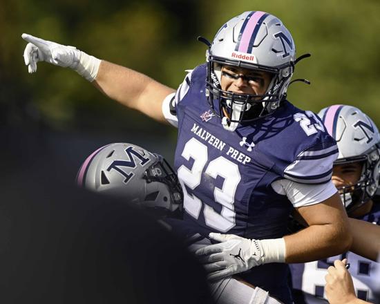 Zeke Bates was among the key offensive performers for Malvern Prep with 99 yards rushing and two touchdowns on 17 carries. Melconian completed 12 of 22 passes for 122 yards and a TD. Danny Riely had five receptions for 51 yards.