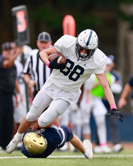 Not surprisingly, junior Marcus Jones, Haverford School’s game-breaking receiver-safety, had another big game. He caught a 27-yard touchdown pass from Zach Faragalli and also caught a two-point conversion pass. Jones finished with a team-high four receptions for 38 yards.