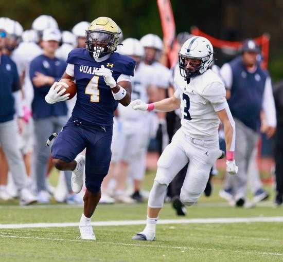 Orcutt had eight receptions for 144 yards and a TD. Garrison completed both of his passes for six yards, but also rushed for 56 yards and a TD on 12 carries. Besides his interception, Garrison also added seven solo tackles, including one tackle for loss. Junior linebacker Kamau Kegler led Episcopal Academy with nine tackles.