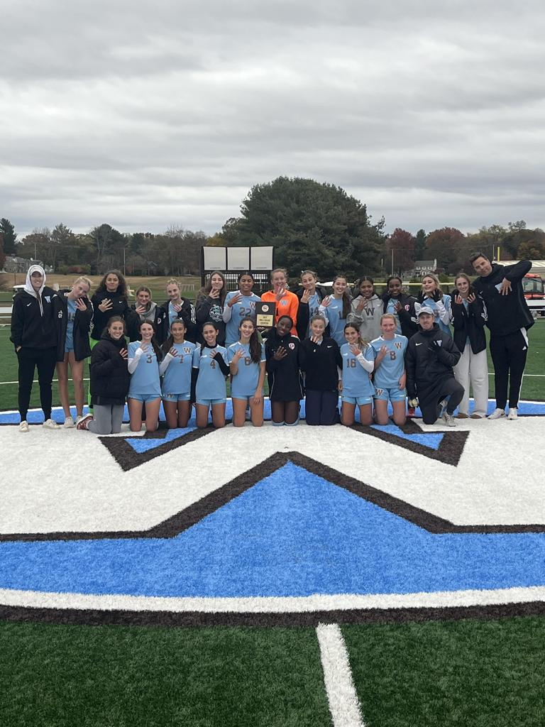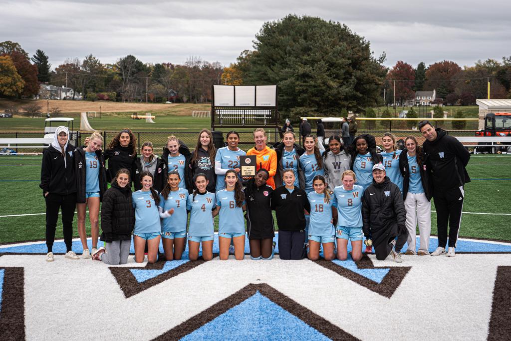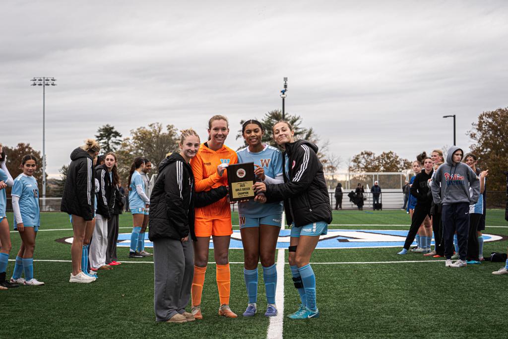 Westtown girls soccer team poses with championship plaque after defeating Shipley in FSL championship - Photo by Josh Abrams for PSD