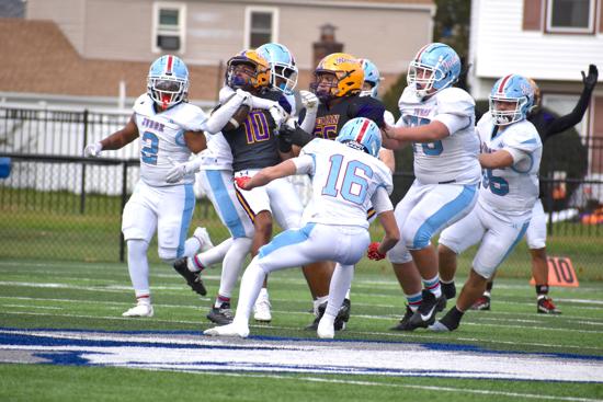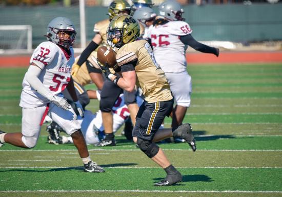 Quarterback Yeboa Cobbold was electric against Bristol, rushing for 127 yards and four touchdowns, plus two passing scores, while Nick O’Brien added 114 rushing yards, a touchdown, and an interception. Defensively, Matthias Lieber (77 tackles) and Russell Holmes (11 sacks) remain anchors, but senior Braeden Smith has been a force of nature with 53 solo tackles, 49 assists, and three pick-six TDs.