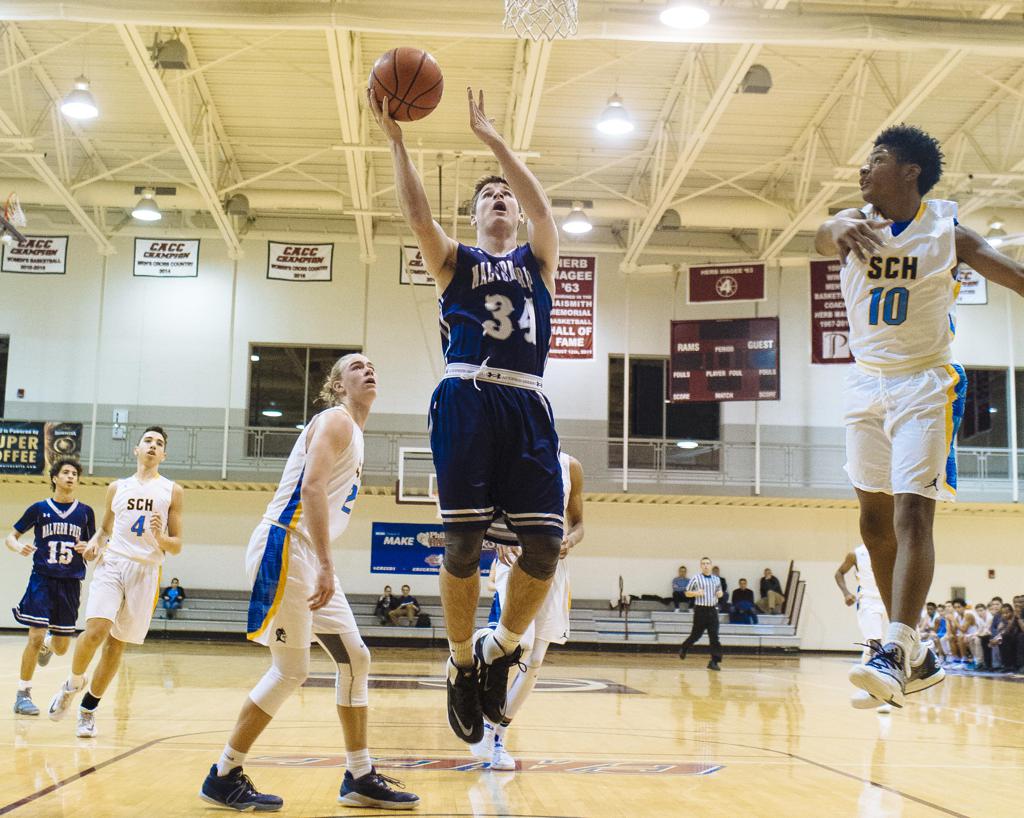 MP’s Deuce Turner soars in for a layup past SCH’s CJ Sweitzer – photo by Zamani Feelings