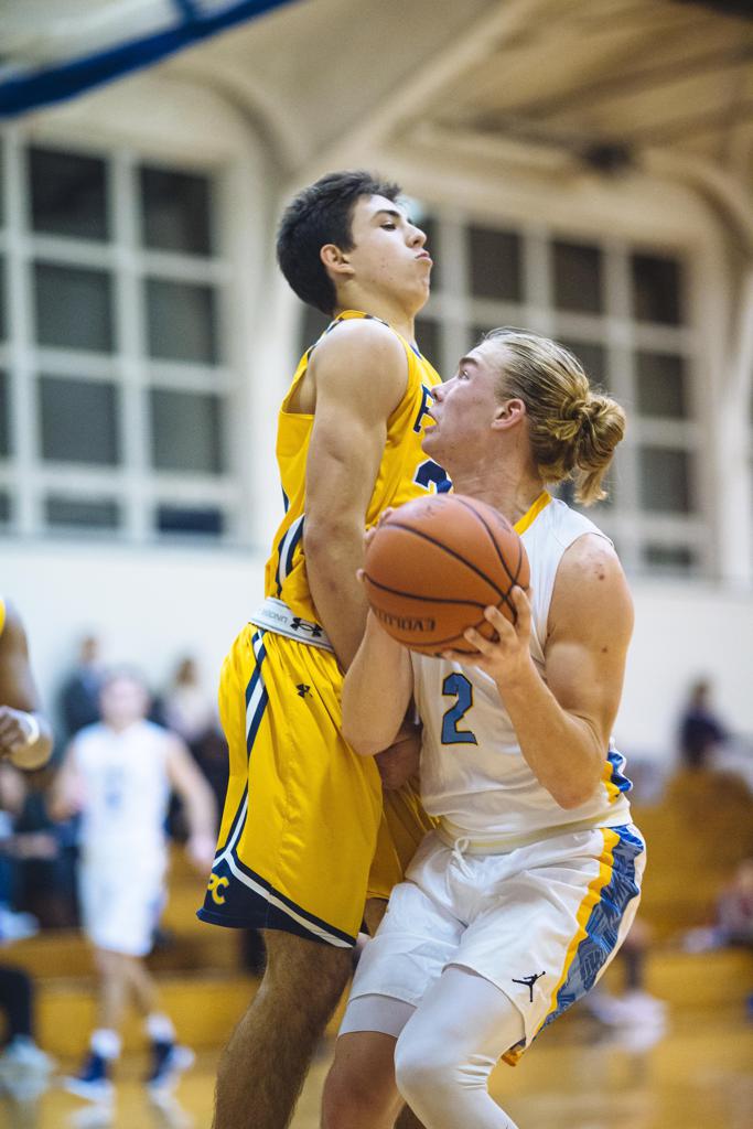 GA senior Cole Storm defends Ford’s junior guard Kharon Randolph – photo by Zamani Feelings