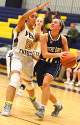 WPC senior, Mireyah Davis, guards NDA sophomore standout, Mandy McGurk – photo by Zamani Feelings