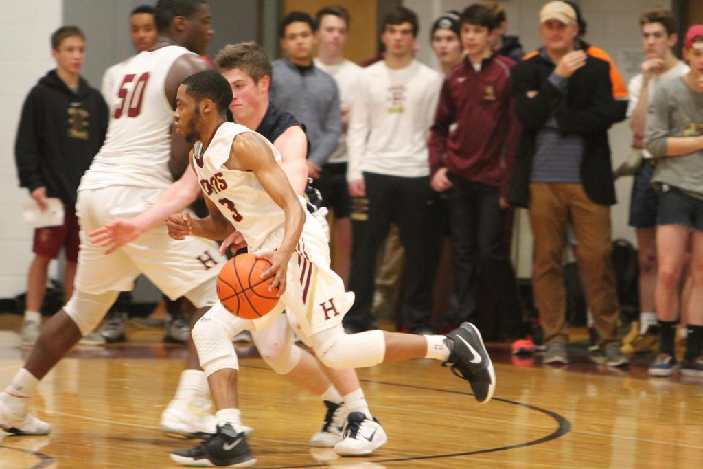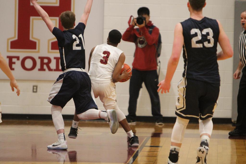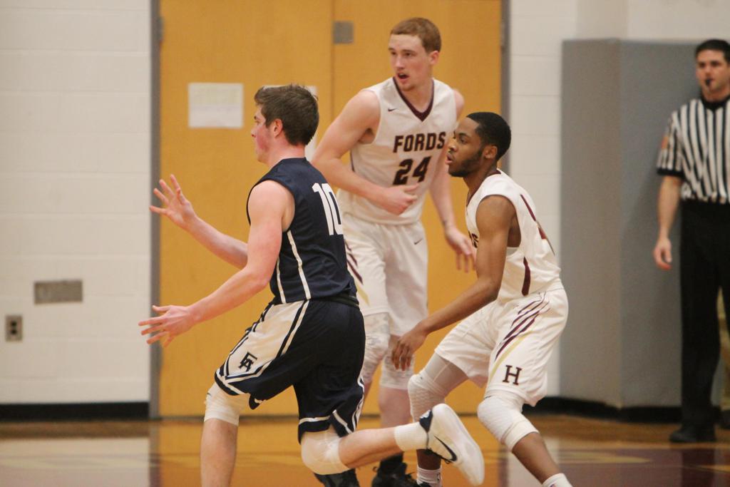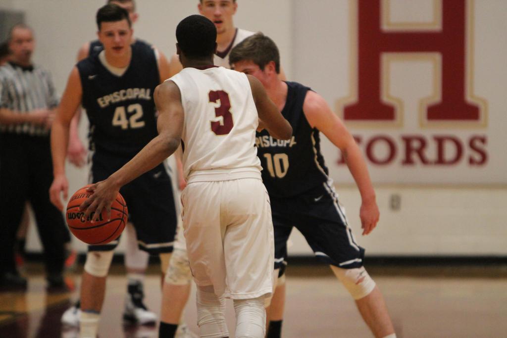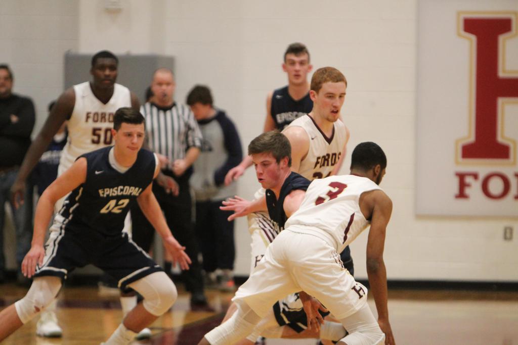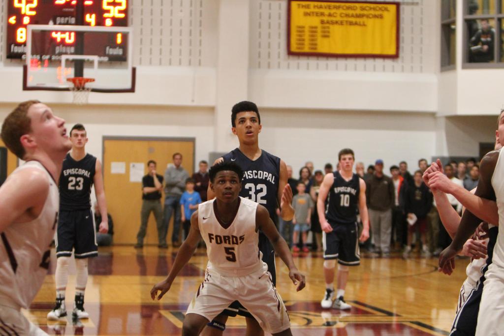 A 12-1 start and 15-3 lead after one quarter did the trick. By the time Episcopal’s lead swelled to 19-3 and 27-8, Haverford School was in desperation mode. The Churchmen led, 32-17, at halftime, and early in the third quarter by 37-18. The Fords utilized their speed and an eight-point flurry by junior Kharon Randolph (game-high 25 points) to climb to within 39-28 with 4:39 left in the third and 46-37 at the start of the fourth.