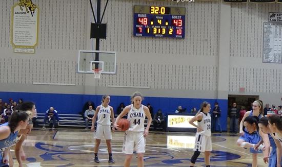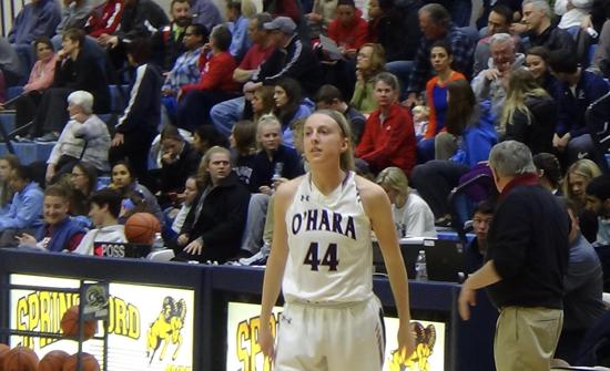 The always clutch Sheehan, who scored 10 points, grabbed four rebounds, and blocked two shots, was one of four O’Hara starters to score in double digits. Junior Maura Hendrixson netted 12 points and snared a game-high eight rebounds – seven of them on the defensive end; junior Kenzie Gardler tallied 12 points; and senior Hannah Nihill added 10 points and two steals. For good measure, junior Molly Paolino came close to joining her teammates, but she finished with seven points to go along with her trademark sterling defense.