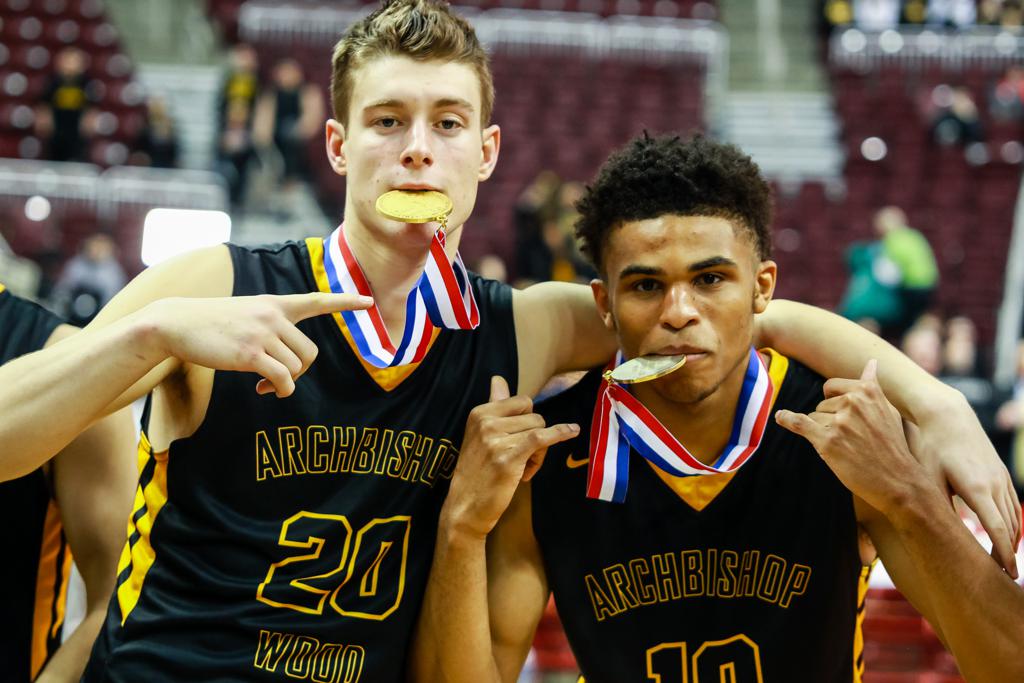 Senior Collin Gillespie holds a well-deserved state championship trophy alongside Matt Cerruti - PSD Photo by Brandon Stivers