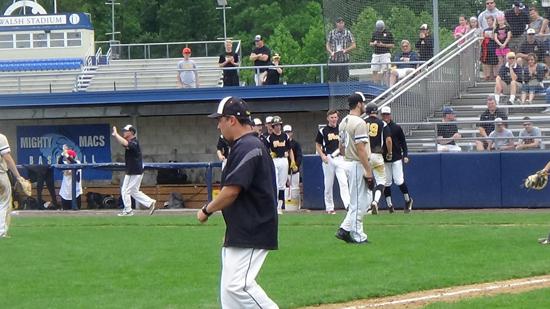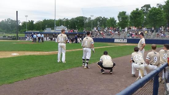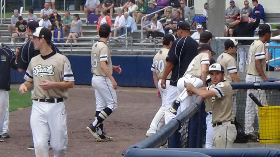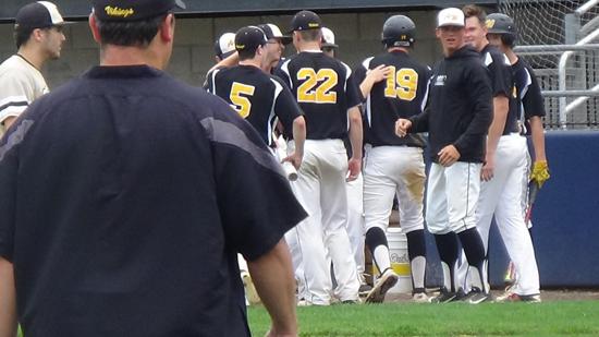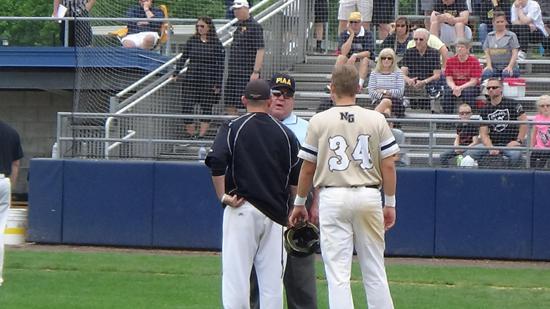 The game’s scariest moment occurred in the bottom of the third. Wood junior catcher John Gifford caught an errant pitch below the facemask. After staying down and receiving aid for several minutes, Gifford rose to his feet to applause, but then quickly collapsed.