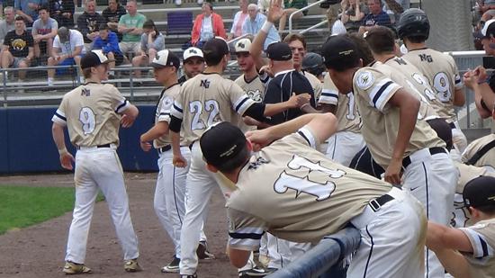 The Saints added an insurance run in the fourth, and N-G senior left-handed pitcher Phil Sanborn held the pesky Vikings scoreless the rest of the way. That necessitated an incredible 12-pitch at bat by Wood senior Mick Pristas with two outs and the bases loaded in the sixth. Although Pristas struck out to end the inning, he gained respect from his counterpart.