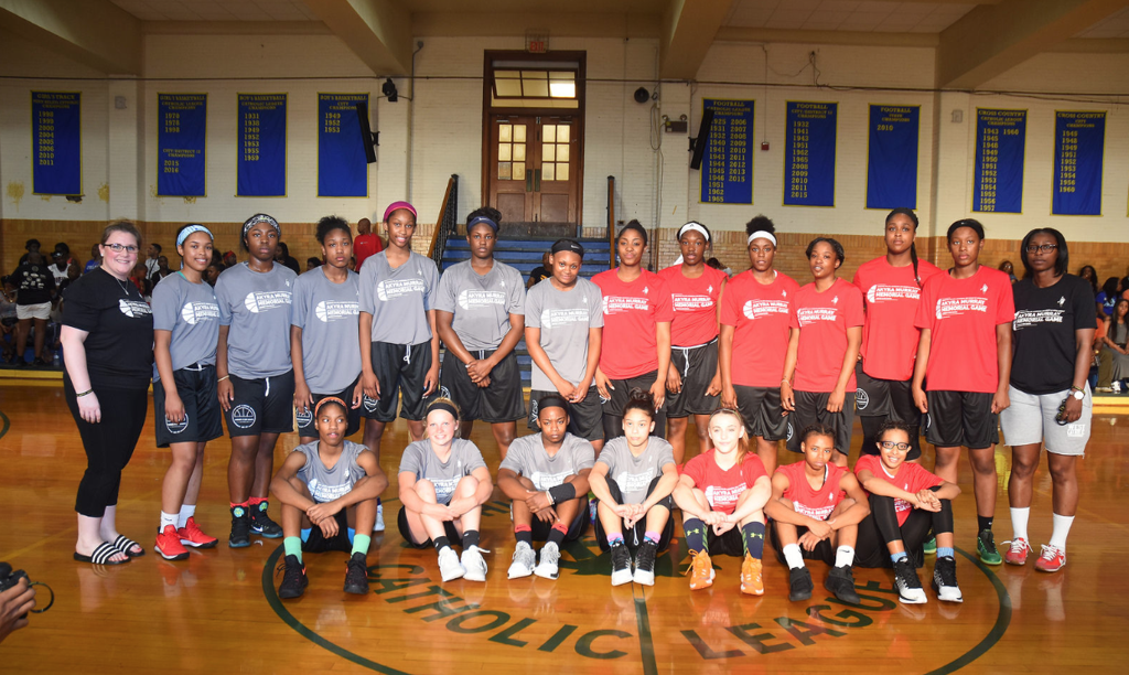 - 20 standout female athletes returned to the court from West Catholic, Neumann-Goretti, Abington Friends, Springside Chestnut Hill, Monsignor Bonner & Archbishop Prendergast, Lansdale Catholic, Mastery North Charter, Abington HS, Audenried Charter, Academy Park, Archbishop Ryan and Imhotep Charter to honor Akyra Murray – photo courtesy of Beulah Osueke